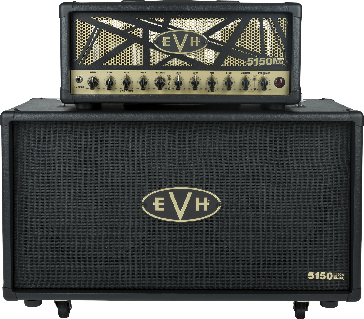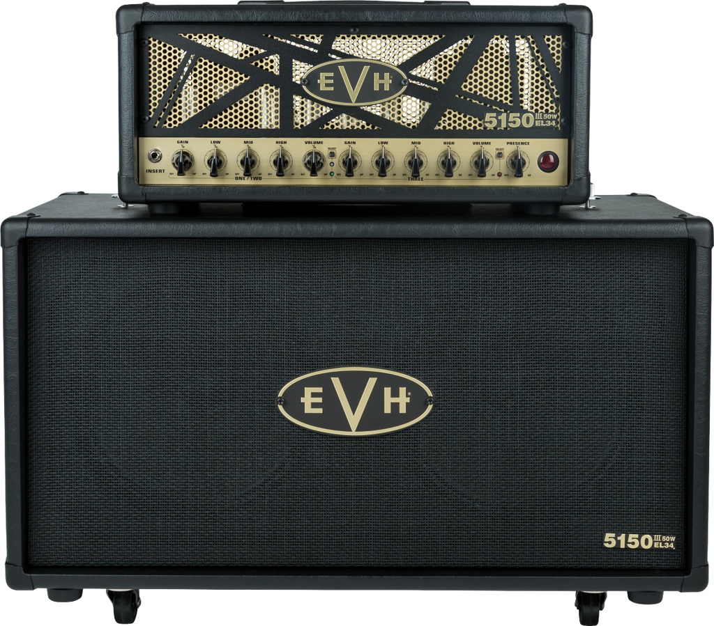 Pulsing with power, the 5150III® EL34 2x12 Cabinet is the perfect companion to the 5150III® 50W EL34 Head with a matching black and gold motif.