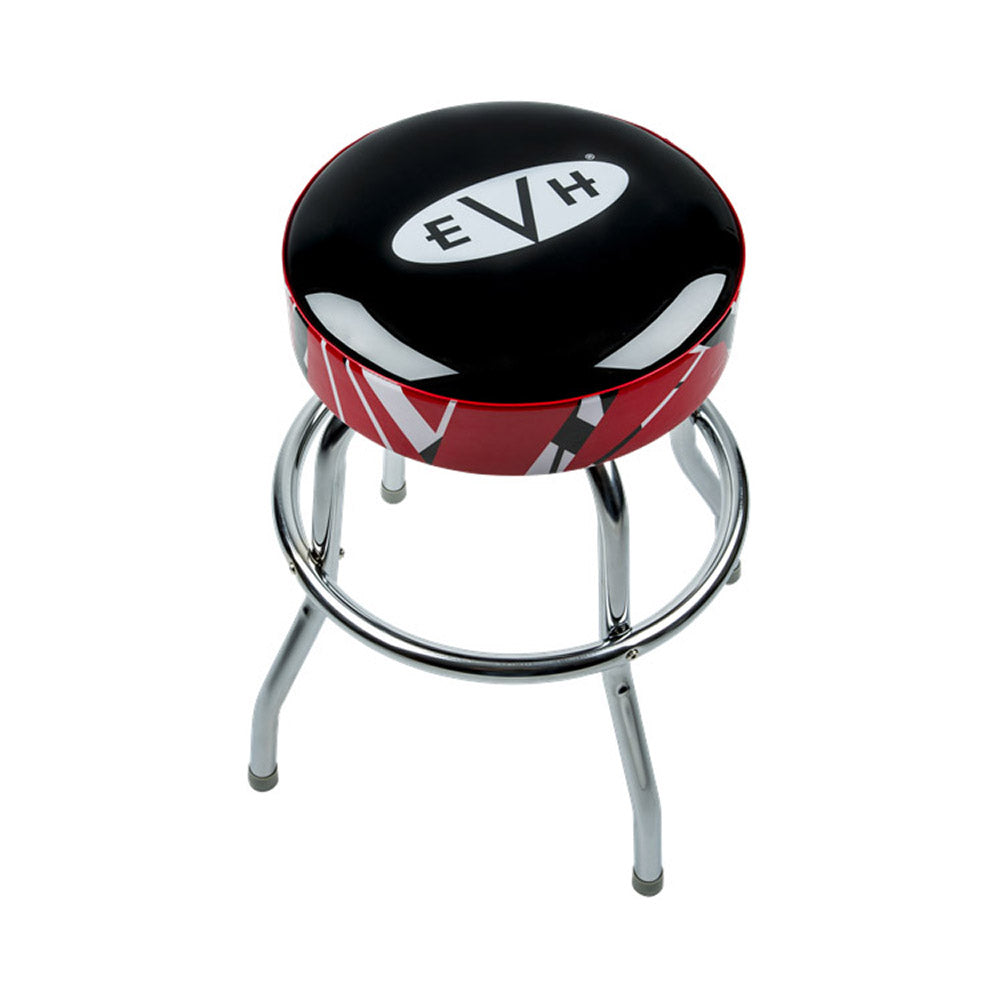 These barstools feature the iconic red, black, and white stripes with a white EVH logo on top.