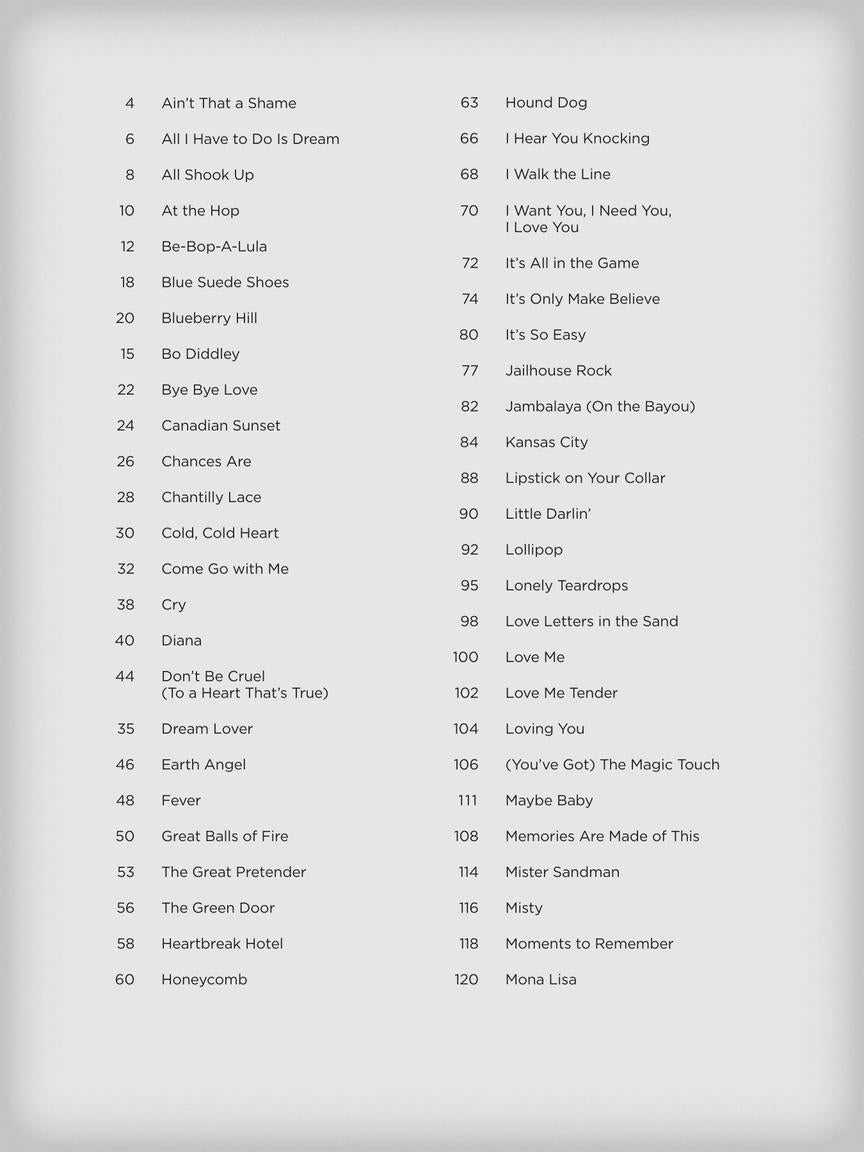 Simplified E-Z Play® Today versions of this collection of 100 of the biggest hits of the '50s. Songs include: Ain't That a Shame • All Shook Up • At the Hop • Be-Bop-A-Lula • Blue Suede Shoes • Blueberry Hill • Chantilly Lace • Come Go with Me • Don't Be Cruel (To a Heart That's True) • Earth Angel • Fever • Great Balls of Fire • Heartbreak Hotel • Hound Dog • I Walk the Line • Jailhouse Rock • Jambalaya (On the Bayou) • Love Me Tender • Mister Sandman • Mona Lisa • Peggy Sue • Peter Gunn • Que Sera, Sera (Whatever Will Be, Will Be) • Rock Around the Clock • Sixteen Tons • A Teenager in Love • Tequila • That'll Be the Day • Unchained Melody • Volare • Why Do Fools Fall in Love • Yakety Yak • You Send Me • Your Cheatin' Heart • and more.