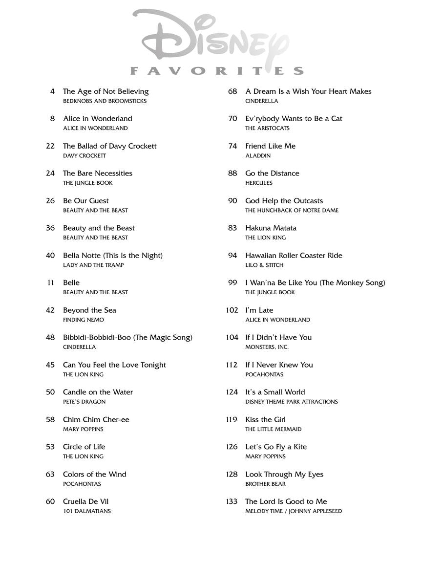 A great collection of 65 Disney hits arranged in our easy-to-play notation, including: Beauty and the Beast · A Dream Is a Wish Your Heart Makes· Friend Like Me · Hakuna Matata · Mickey Mouse March · Under the Sea · A Whole New World · and more!