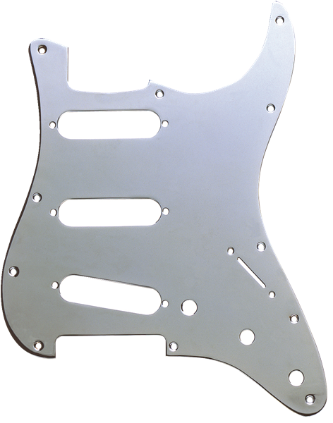 11-Hole mount plated brass modern-style pickguards. Shielded with second screw near middle pickup.
