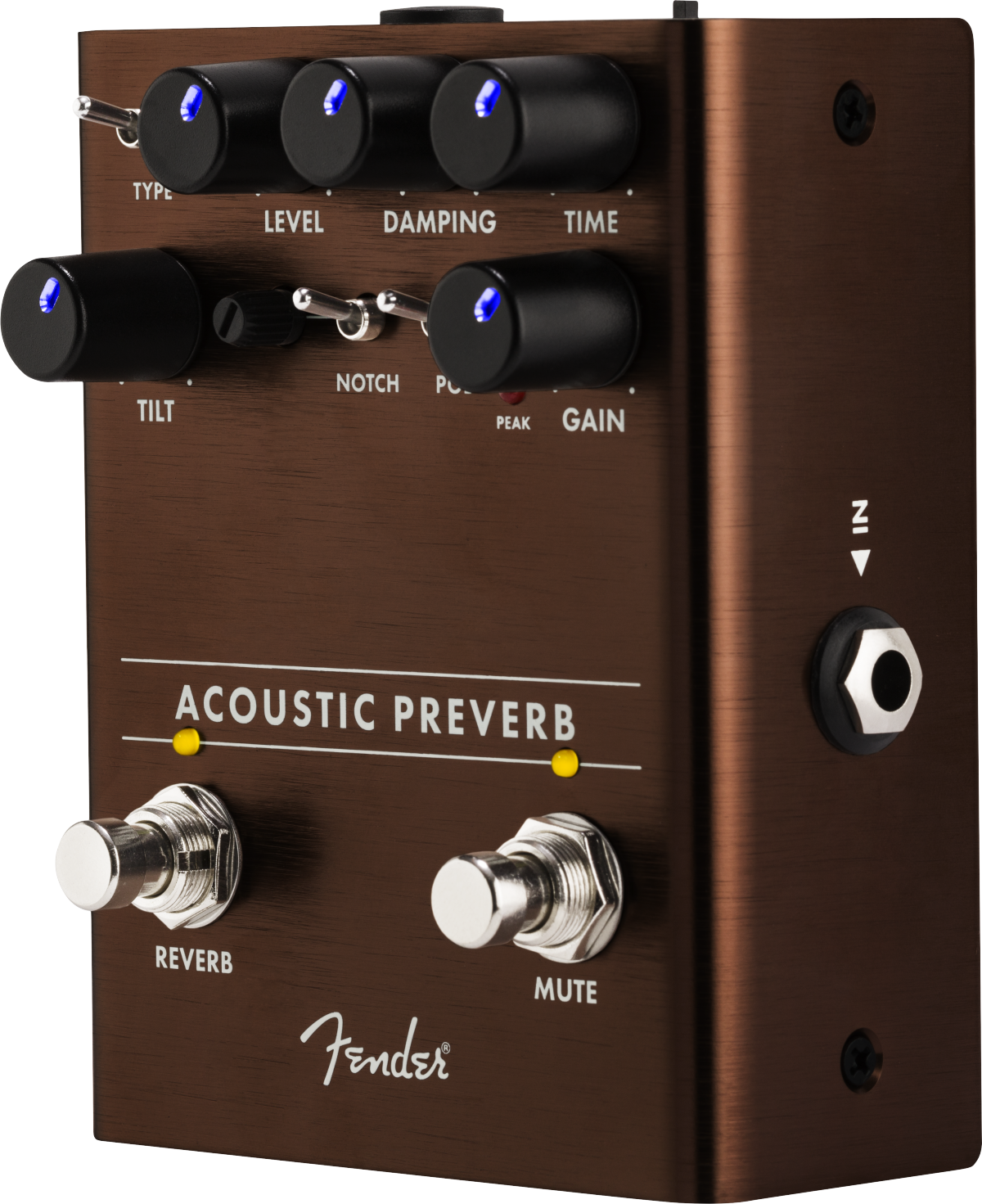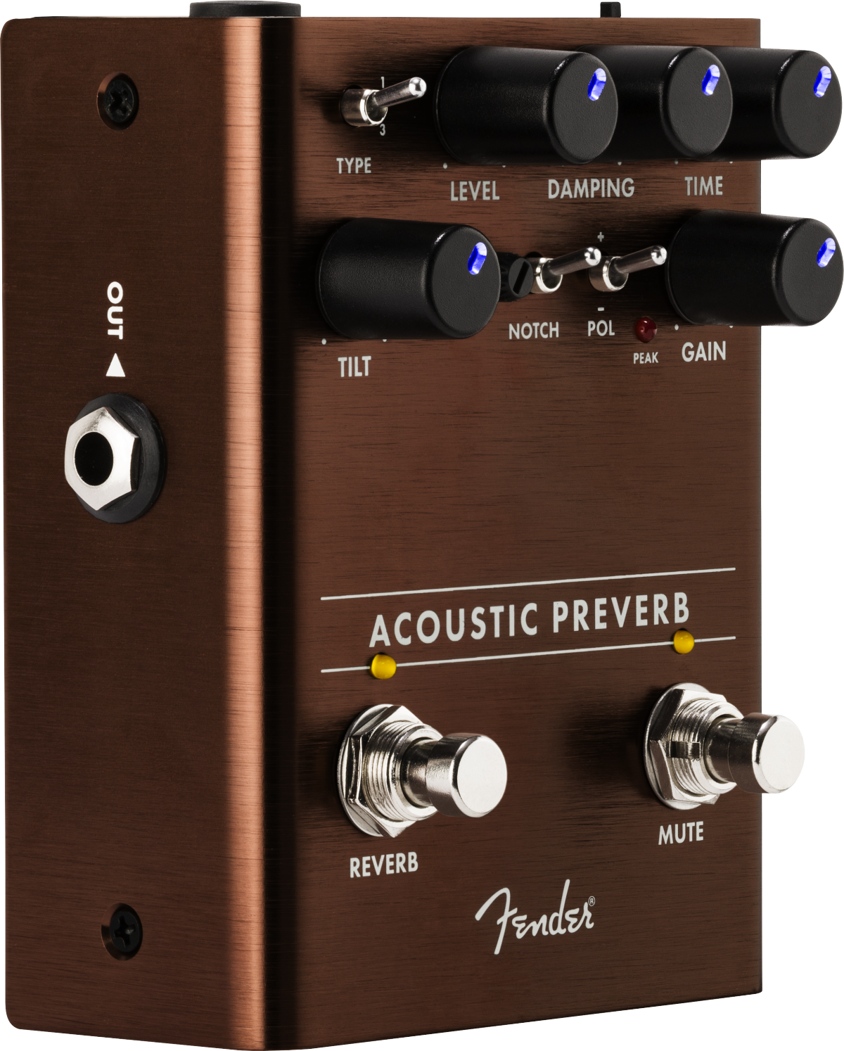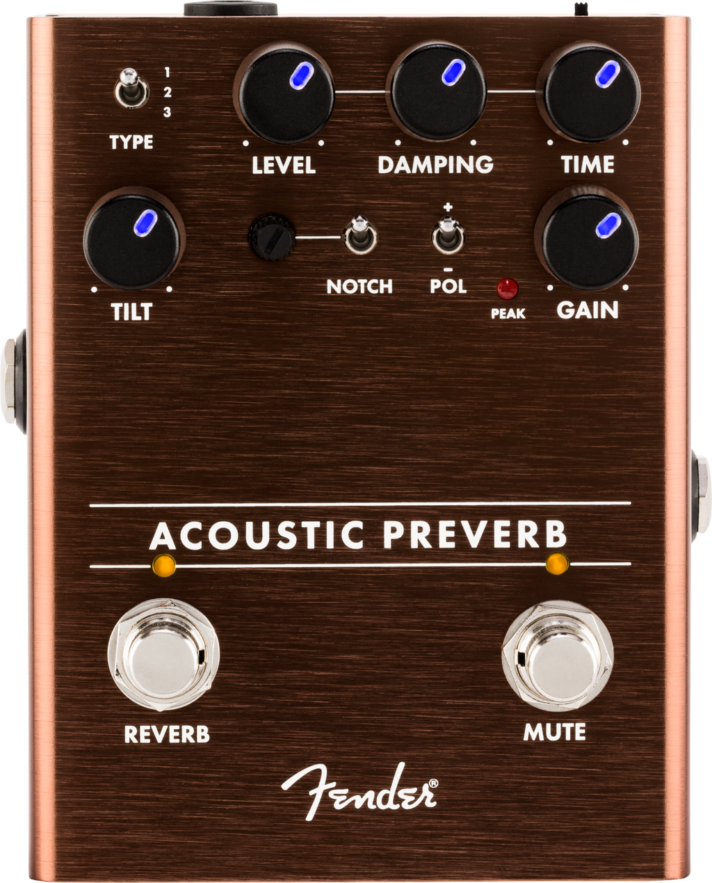 Reverb enhances the tone and natural beauty of an acoustic guitar and Fender’s Acoustic Preverb provides that and more. Featuring three distinctly voiced-for-Acoustic-guitar reverb settings and a high-fidelity preamp, this pedal is the ultimate ambience machine. The Notch filter and polarity switch are designed to eliminate feedback while the Tilt knob allows you to control your overall EQ balance.