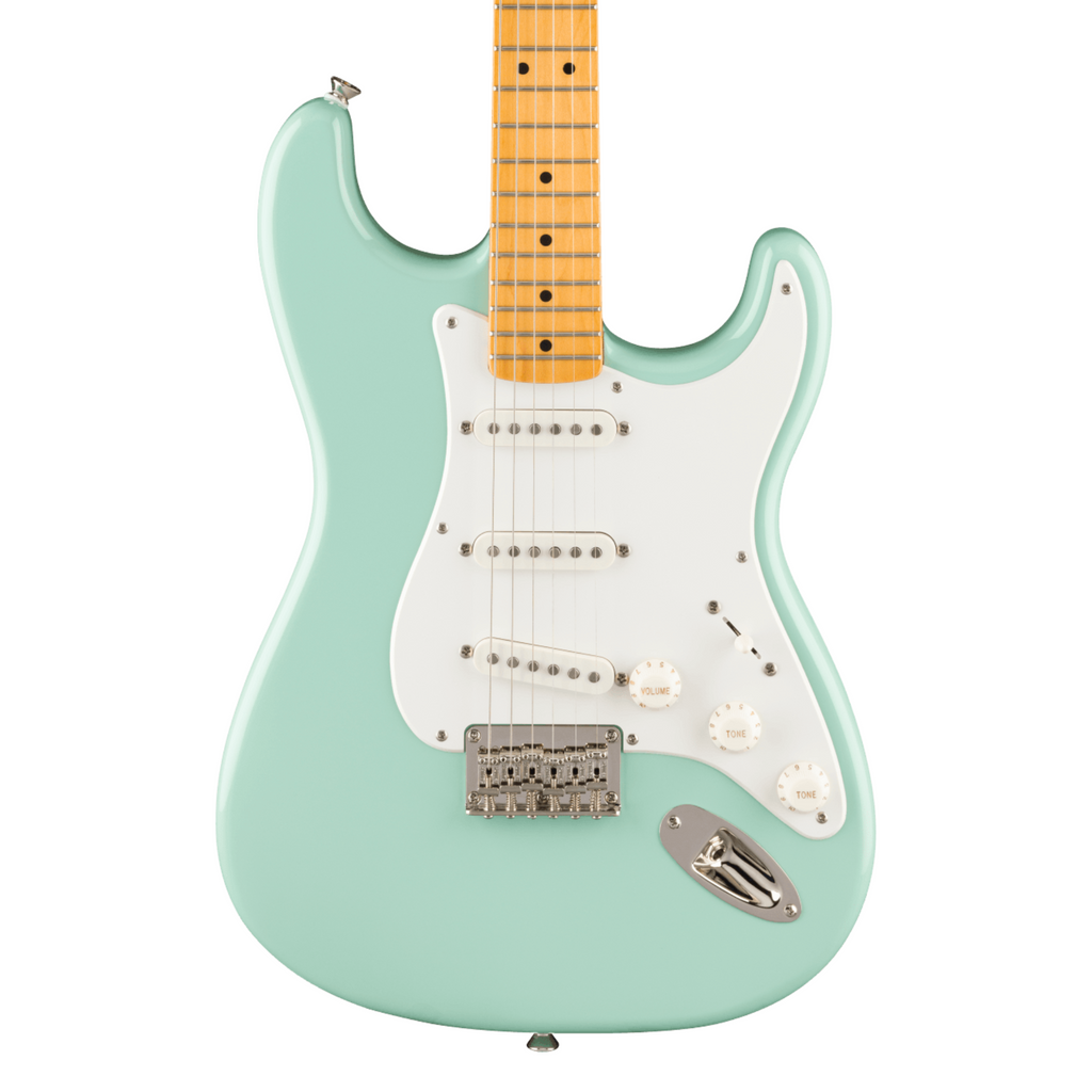 A celebration of the early days of the Strat® in the 1950s, the Classic Vibe™ ‘50s Stratocaster® HT produces incredible tone courtesy of its three Fender Designed™ alnico single-coil pickups. An option first introduced in 1955, the hardtail bridge (HT) provides stable intonation and its string-through-body design creates optimal body resonance. This throwback Squier model also features 1950s-inspired headstock markings, rich-looking nickel-plated hardware and a slick vintage-tinted gloss neck finish for an old-school vibe.