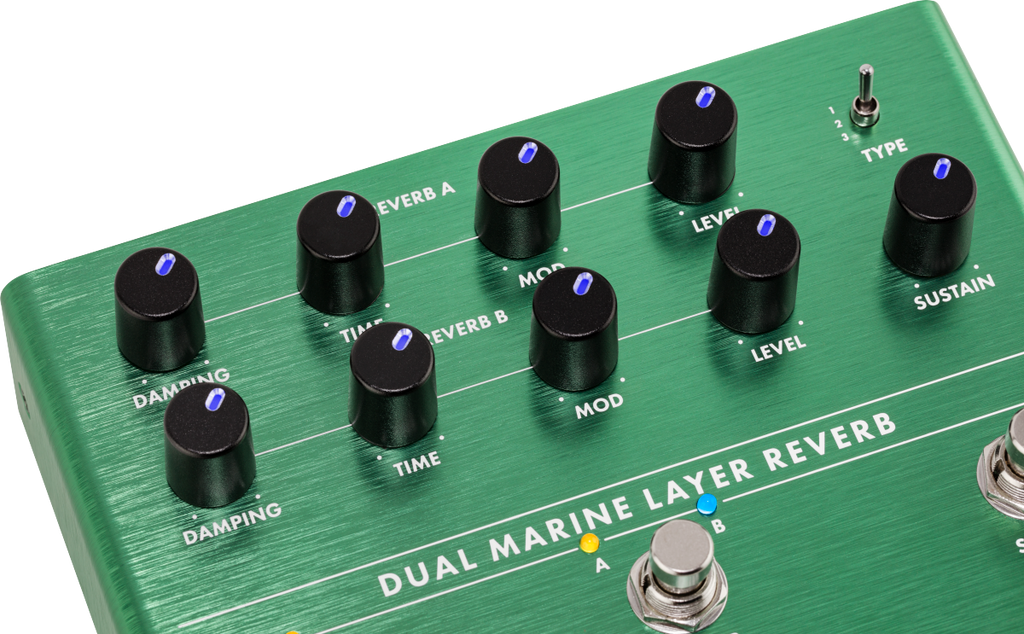 Fender and Reverb – name a more iconic musical duo. Fender’s Dual Marine Layer allows you to add even more dimension to your sonic arsenal. Featuring two independent foot-switchable settings, three unique reverb algorithms allow the user to create multiple soundscapes. The sustain switch generates massive atmospheric creations for an out-of-this-world tonal experience.