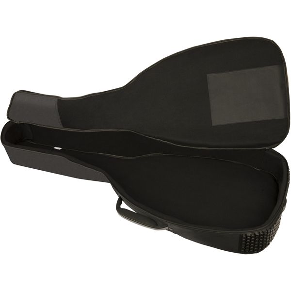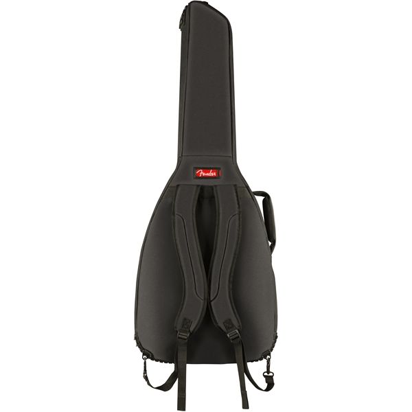 Fender's F610 Series gig bag is a stylish and affordable way to keep your dreadnought acoustic guitar safe while traveling. Featuring our iconic asymmetrical Fender shape, its durable outer layer is constructed of tough 600 Denier polyester that protects against impacts while avoiding ripping and tearing. Its interior is filled with 10mm padding and lined with soft touch microfiber that keeps your instrument secure while preventing potential finish damage. The F610 gig bag also comes with a comfortable two-piece handle and ergonomic air mesh backpack straps with easily adjustable ladder lock buckles, so you can comfortably carry your instrument without unnecessary physical strain. Plus, the front storage pocket offers additional storage space for small accessories and a business card window.