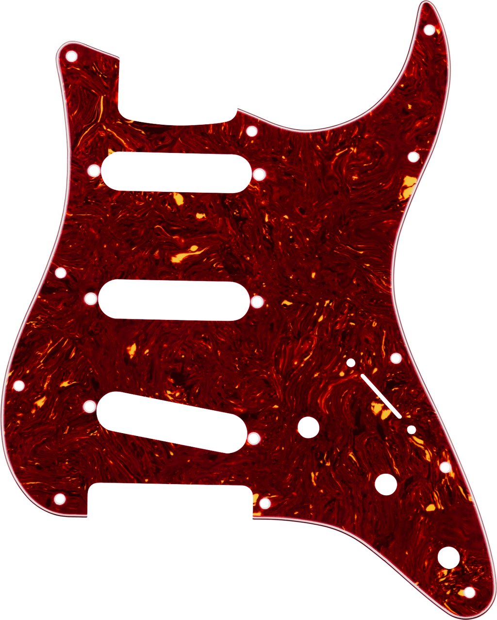 Designed specifically to fit the Michael Landau Coma Stratocaster, this pickguard is designed for 3 single-coil Stratocaster pickup installation. Made of celluloid nitrate and shielded for noise reduction, this brown shell pickguard is slightly larger than standard and designed to fit perfectly on the signature Coma Stratocaster.