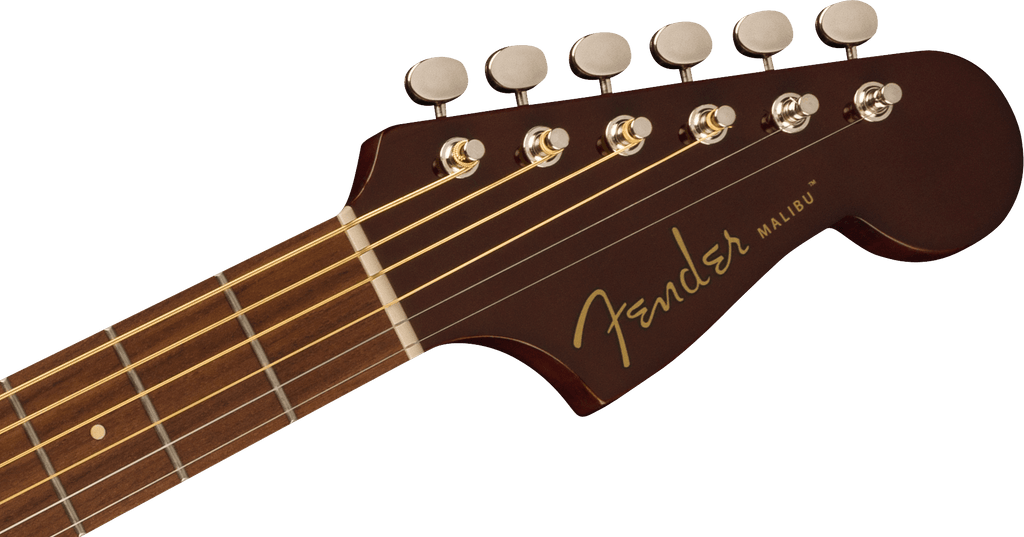 Crafted with an X-braced solid spruce top and sapele back and sides, the compact parlor-sized body of the Malibu Player produces a sweet, articulate voice that encourages players to reach for new chords and melodies. The nato neck is designed with an easy-to-play slim "C"-shaped profile, a short 24" scale length, and a tilt-back 6-in-line headstock for a distinctive look born from Fender's electric guitar DNA. Other notable details include vintage-style tuning machines for smooth, accurate tuning, a GraphTech® NuBone® nut and saddle for detailed harmonic character. With elegantly integrated controls for a sleek, modern look, the onboard Fishman® Flex preamp system allows faithful reproduction of the guitar's natural sound when plugged into an amplifier or recording device.