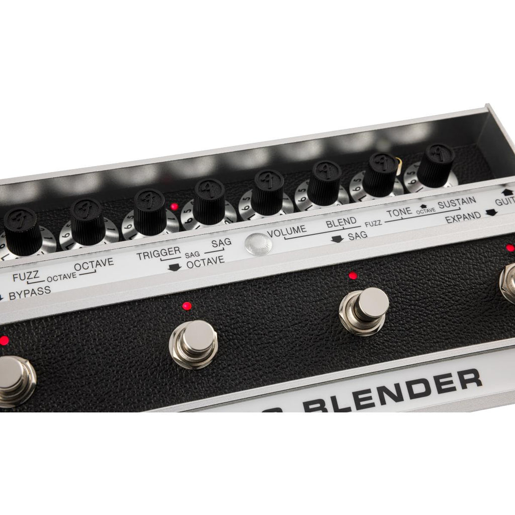 At its core, the Fender Shields Blender echoes the tone of Shields' own vintage 1970s Fender Blender, thanks to carefully hand tracing the circuit from his personal fuzz box. Built around this vintage circuit are entirely new ways of controlling and blending the original fuzz voice, all crafted with performance in mind utilizing four easy-access footswitches. Two footswitchable channels of fuzz, each with dedicated level controls, offer the ability to blend the fuzz voice with your clean signal or to blend the fuzz voice with a beefy suboctave fuzz, while the sag footswitch introduces sputtering and ducking effects like never before heard, all controlled by the intensity of your playing dynamics.