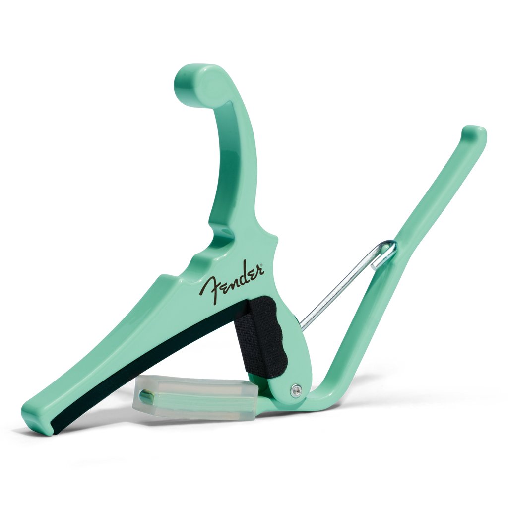 Two legendary brands. Four legendary finishes. Kyser® Musical Products, Inc. has collaborated with Fender® Musical Instruments Corp. to launch its new series of "Classic Colours" Quick-Change® Electric Guitar Capos. The capos feature Kyser's precision ColorMatch Process™ along with a newly designed 9.5" radius that has been engineered against numerous fretboards from several electric guitar models to guarantee accurate tension and fit.