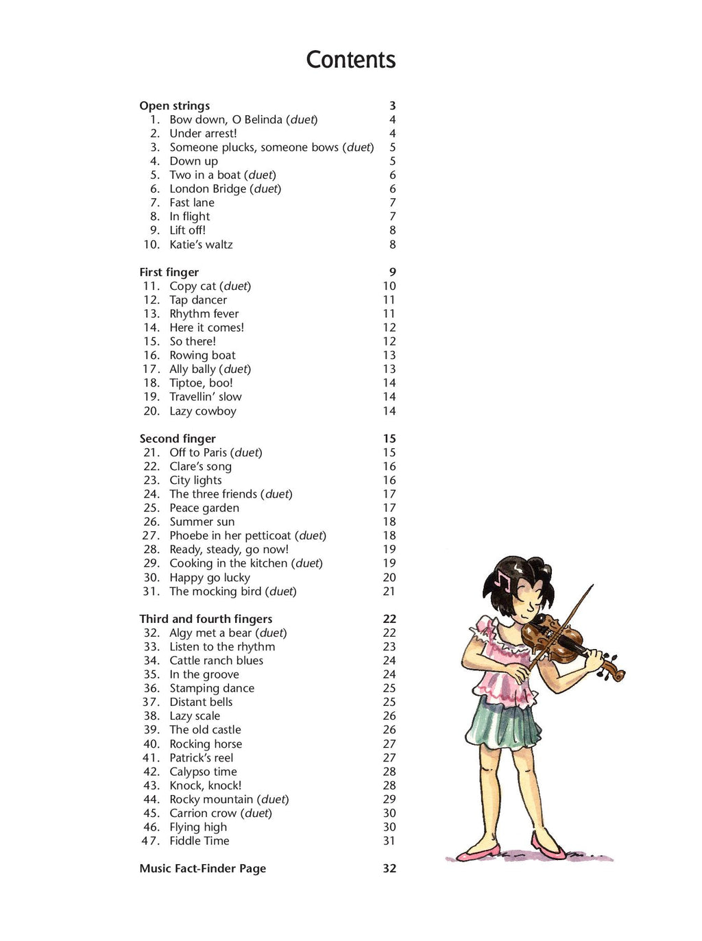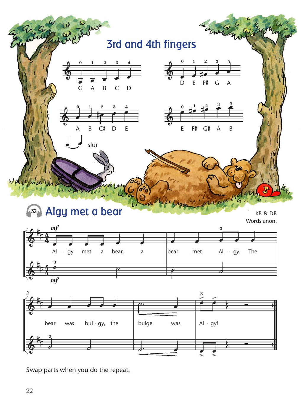 - pieces and duets using the open strings and finger pattern 0-1-23-4