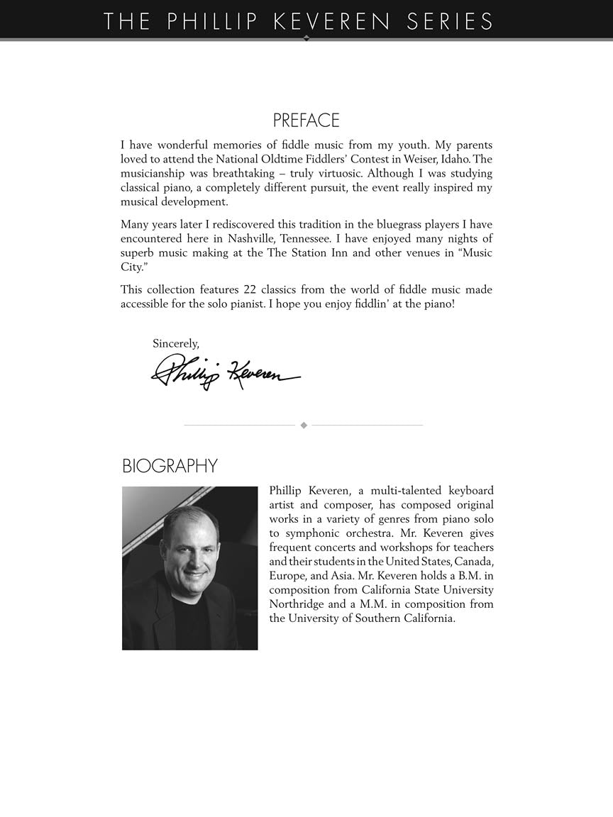 22 classic bluegrass tunes expertly arranged for solo piano by Phillip Keveren.