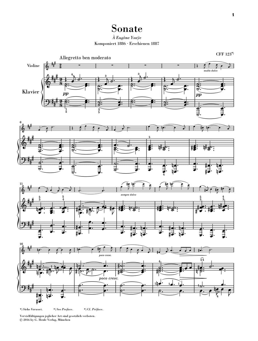 Unlike other late works by Franck, the Violin Sonata of 1886 found a friendly reception among critics and public from the outset. It is dedicated to Eugène Ysaÿe, who was attracting much attention at the time with his flawless violin technique. Ysaÿe was so inspired by the Sonata that he promised “I will play this masterpiece wherever I can find an artistically-minded pianist”. Nothing has changed to the present day regarding the work’s continuing popularity, but it was time to revise Henle’s previous edition to reflect the latest research. In the intervening period it has been shown that Franck was actively involved in reading the proofs for the printed edition, meaning that the first edition, which contains many differences from the autograph, has become the basis for our new one. The markings of the violin part of our edition are by Yehudi Menuhin; Daniel Hope has undertaken the changes required by the revised musical text.