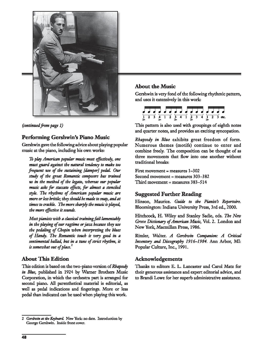 Rhapsody in Blue catapulted George Gershwin into a world-famous career. It brought jazz into the concert hall using a musical language that was fresh, spontaneous, and uniquely American. This edition is based on the 2-piano version, first published in 1924 by Warner Brothers Music Corporation. Editorial pedal and fingerings are included. 48 pages. A Federation Festivals 2016-2020 selection. A Federation Festivals 2020-2024 selection.