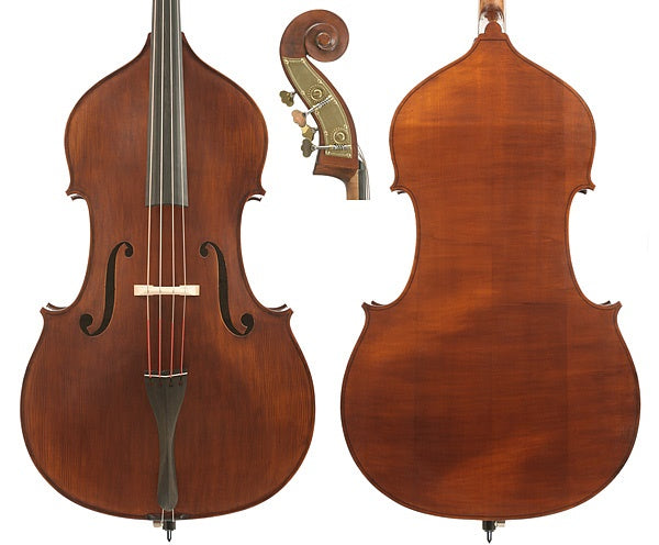 3/4 Gliga III solid double bass outfit finished with hand applied German-made oil varnish, giving a special "aged" appearance. Standard German pattern body. Features a solid spruce top; solid maple back and neck, ebony fittings and inlaid purfling. Fitted with high quality Rubner machine heads. These medium level solid instruments are handcrafted in Romania and represent outstanding value-for-money with distinctive European flavour.