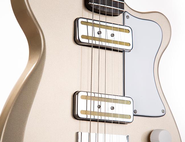 Crafted with a pair of hand-wound gold foil P90 pickups, the Juno offers warm and rich harmonics that roar with an attitude once you push this wonderful guitar into overdrive. A push/pull Master Volume pot adds even more tonal versatility — just pull it up to recreate the effect of a rolled-off tone knob.