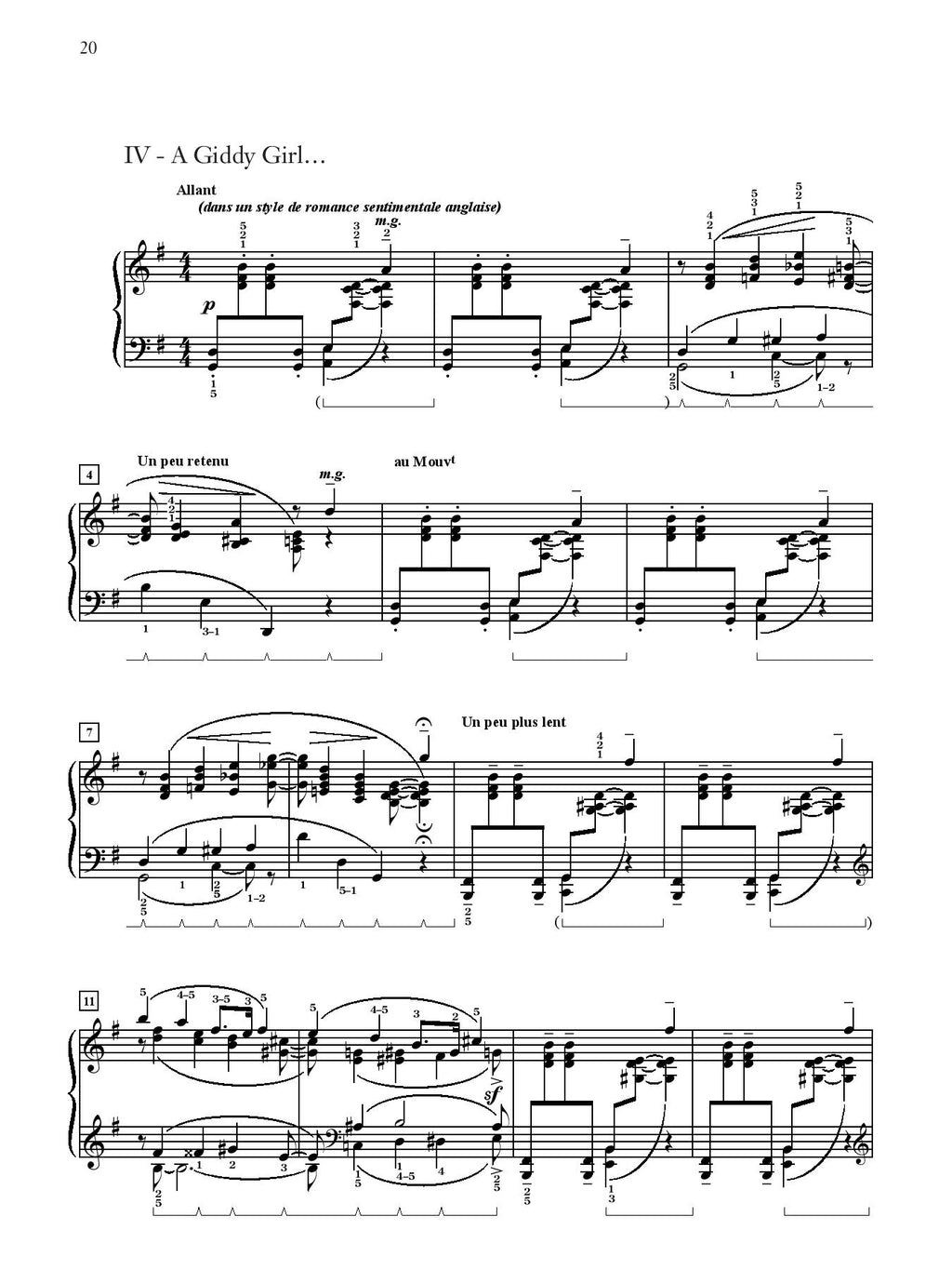Jacques Ibert's Histoires, a collection of 10 Impressionistic piano pieces, was written between 1912 and 1922. Most of the pieces were composed during Ibert's years in Rome at the French Academy, and many of the pieces were inspired by the sights seen during his travels to Spain, Italy, and Tunisia. These works are known for the vivid images they evoke and have found a permanent place in the teaching repertoire. The collection has been transcribed for various instruments, including piano duet (one piano, four hands). The complete set is approximately 23 minutes in duration. Titles: I (La meneuse de tortues d'or) * II (Le petit âne blanc) * III (Le vieux mendicant) * IV (A Giddy Girl) * V (Dans la maison triste) * VI (Le palais abandonné) * VII (Bajo la mesa) * VII (La cage de cristal) * IX (La marchande d'eau fraiche) * X (Le cortège de Balkis).