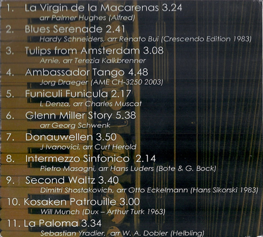 Recorded by The Big Squeeze band, conducted by Terezia and John Kalkbrenner (Snr), Intermezzo showcases the band through a a collection of accordion favourites.