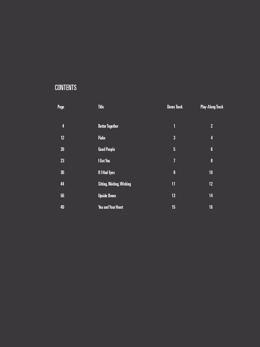 8 songs: Better Together • Flake • Good People • I Got You • If I Had Eyes • Sitting, Waiting, Wishing • Upside Down • You and Your Heart.