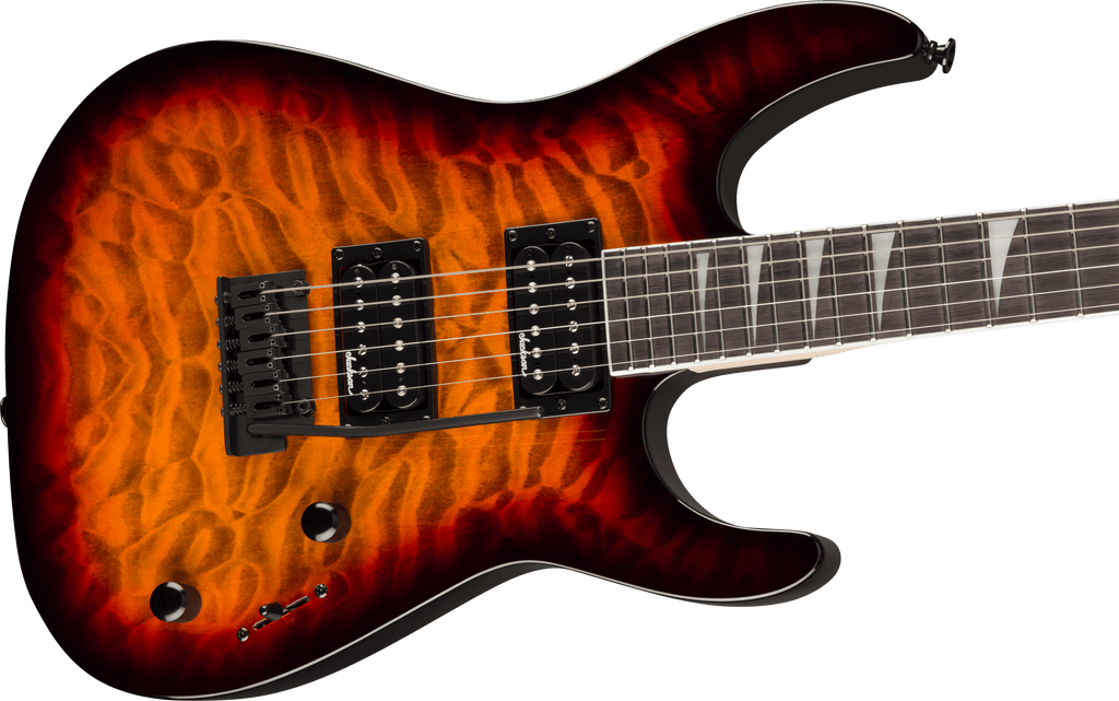 A pair of Jackson high-output humbucking pickups with ceramic magnets cranks out clear tone with plenty of girth, and can be shaped with a three-way blade switch and single volume and tone controls.