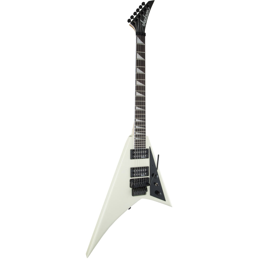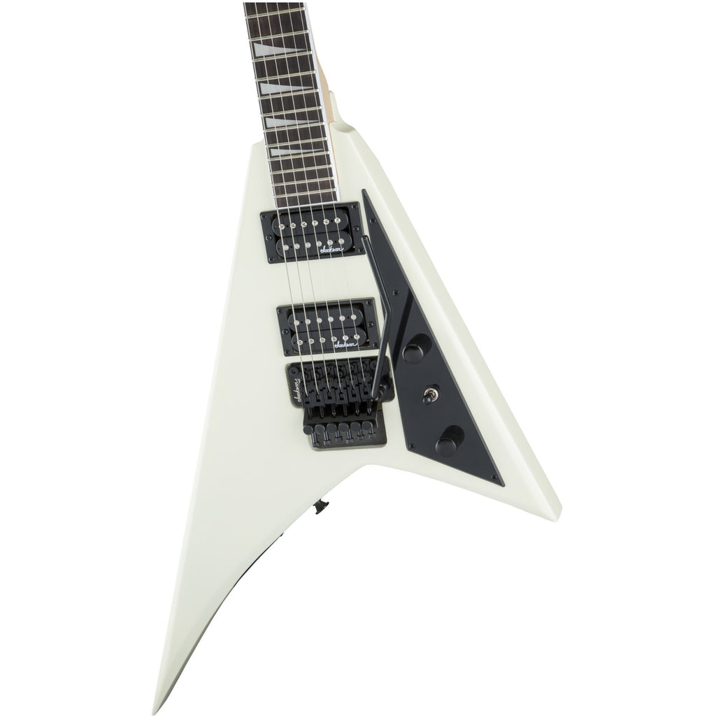 Other features include dual Jackson high-output humbucking pickups with ceramic magnets for volcanic tone, three-way pickup toggle switch, single volume and tone controls and a Jackson-branded Floyd Rose® double-locking tremolo bridge system for dynamic response and reliable tuning stability.