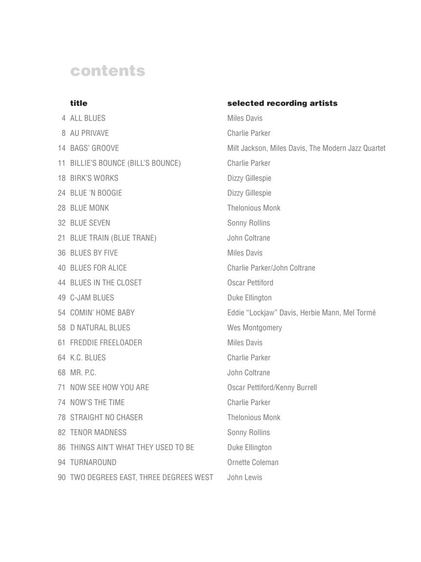This second edition features piano solo arrangements with chord names for 25 bluesy jazz classics, including: All Blues • Au Privave • Blue Monk • Blues for Alice • Mr. P.C. • Now's the Time • Straight No Chaser • Tenor Madness • Things Ain't What They Used to Be • and more.