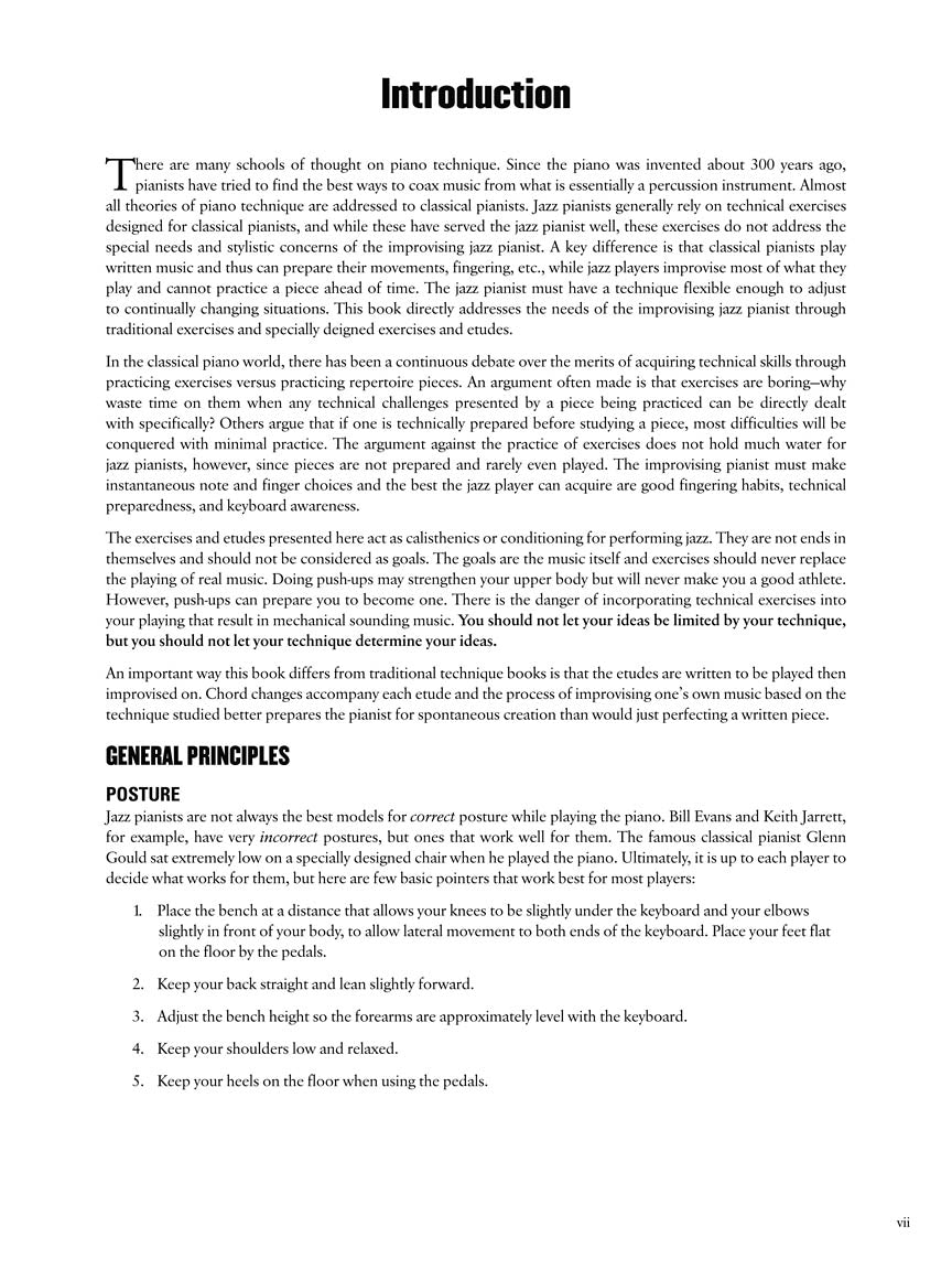 This one-of-a-kind book applies traditional technique exercises to specific jazz piano needs. Along with warm-ups, etudes isolate each technical problem within a jazz context. This allows for improvisation, directly addressing the needs of the jazz player. Practicing is not only pragmatic, it's fun!