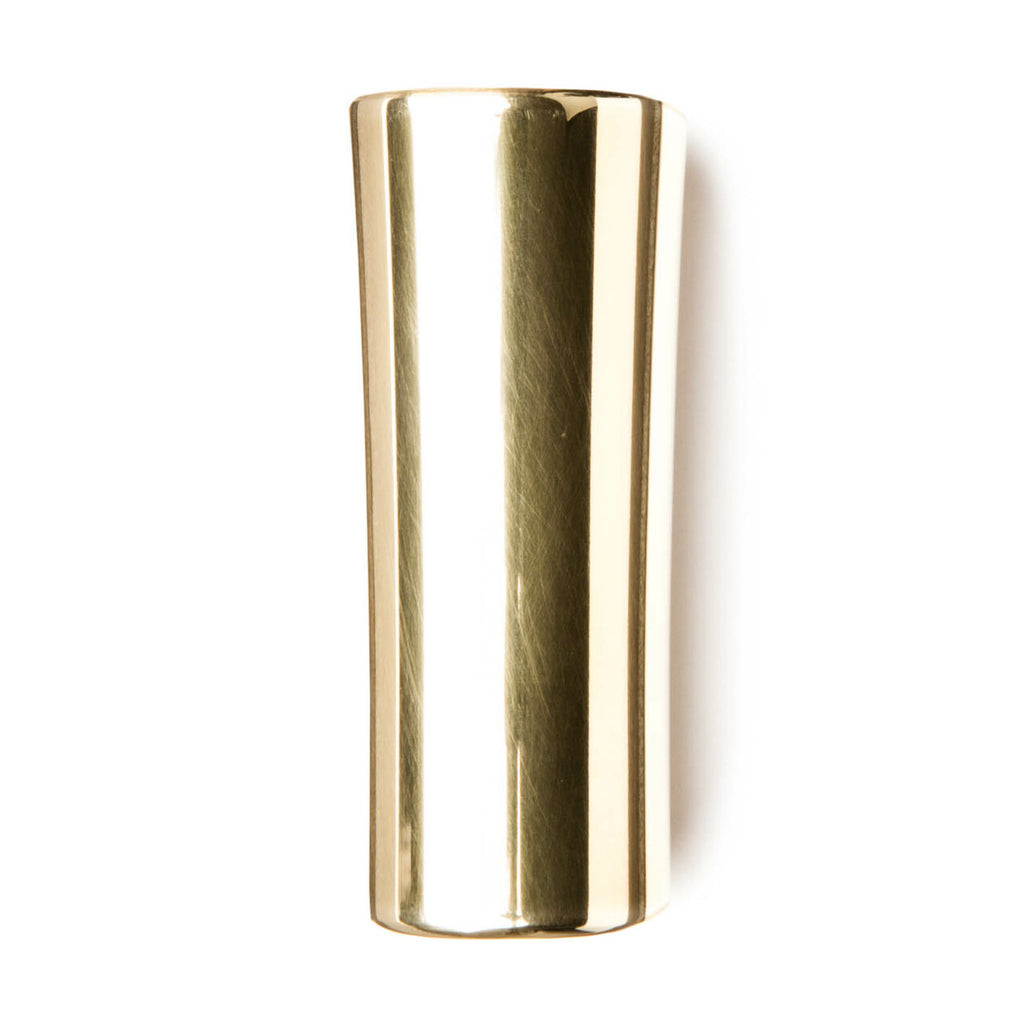 This brass slide is concaved to make contact across all six strings on 12" radius curved-neck guitars, featuring heavy wall thickness and a medium diameter.