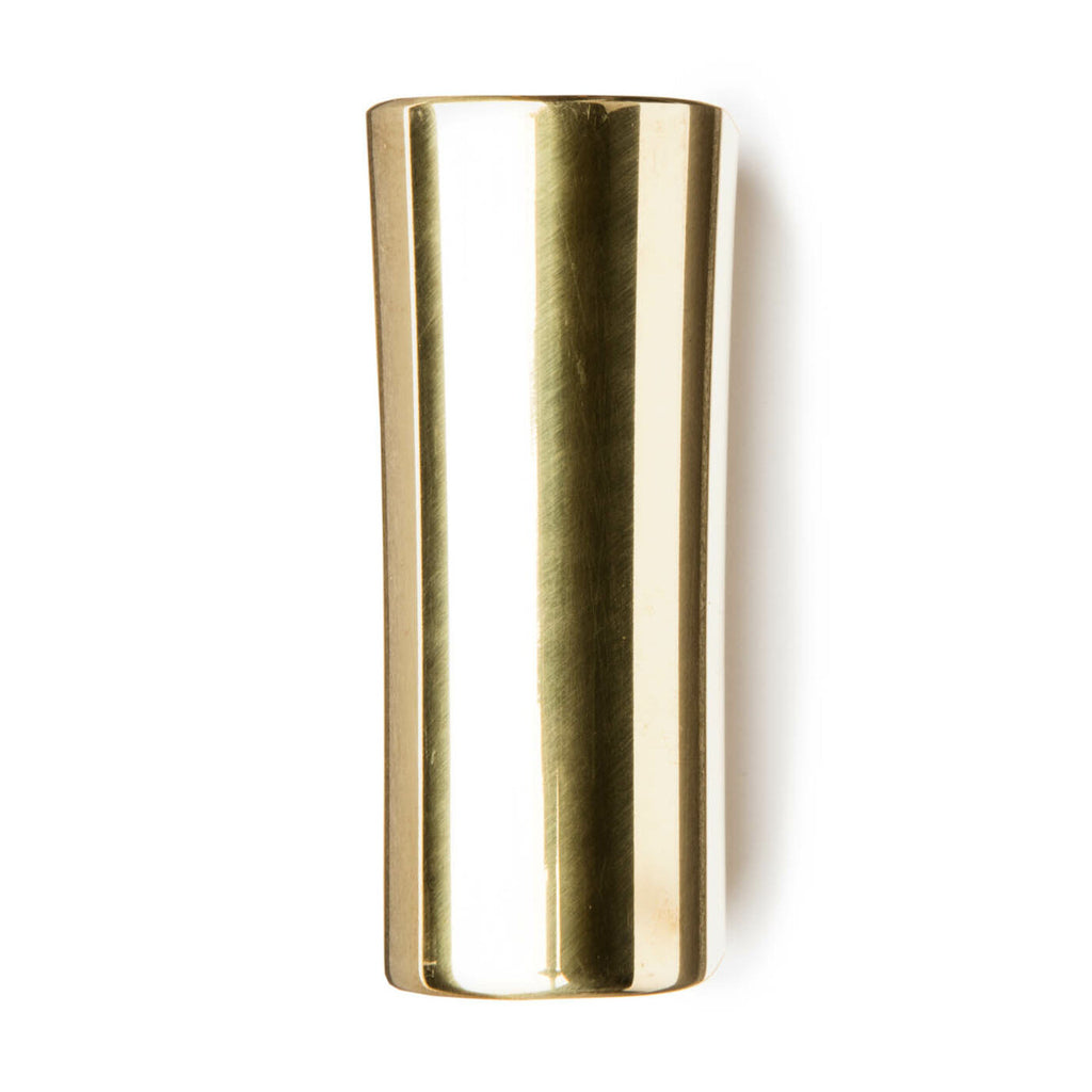 This brass slide is concaved to make contact across all six strings on 12" radius curved-neck guitars, featuring heavy wall thickness and a medium diameter.