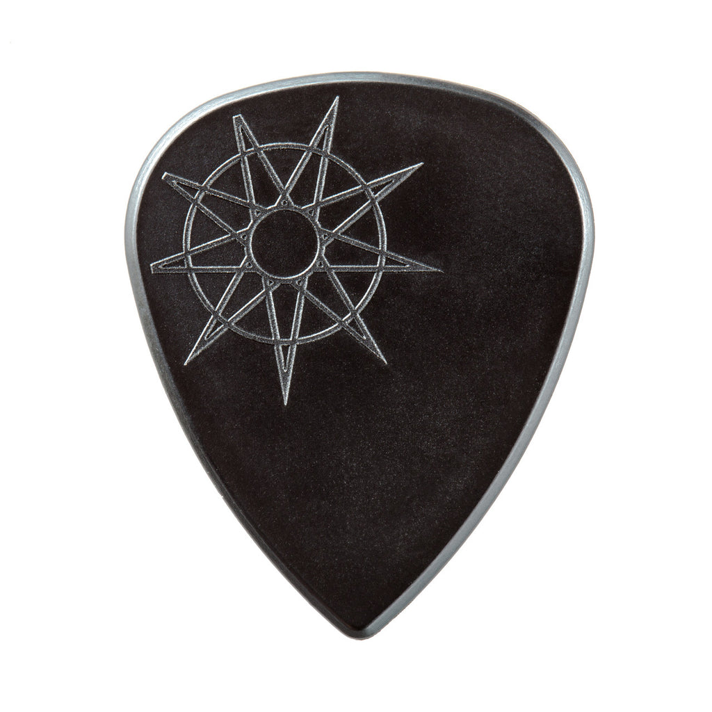 The Jim Root Custom Nylon Pick draws from the original Nylon Jazz III Pick and the the Tortex TIII Pick to create an all-new pick that allows Jim to make the most of his hard-hitting-yet-technical playing style. Like the Jazz III, this pick is made from Dunlop Nylon, which produces a full tone and has greater flexibility when digging in. The shape is all TIII, featuring the size and shoulder profile of a standard pick for a familiar feel in the hand with a Jazz III-inspired tip for superior speed, precision, and articulation. Finally, an off-set raised logo provides just the right amount of grip for the thumb and index finger.