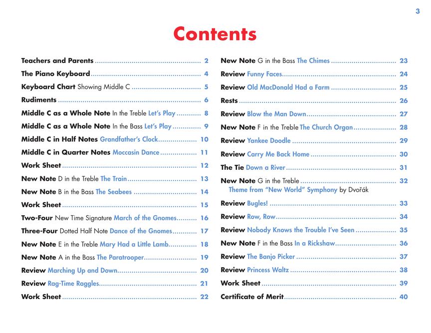 Part one is devoted to developing fluency in reading by note, the biggest hurdle for most young children. The range is purposely limited. Only five notes up and five notes down from middle C are presented and time values do not go beyond crotchets.