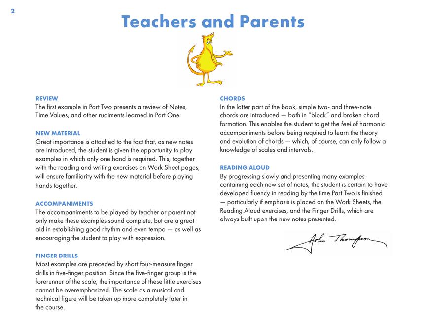 with a modern look, a clear and straight-forward layout plus amusing new characters who help emphasise the information being taught, this is the essential follow up to John Thompson's Easiest Piano Course: Part 1.