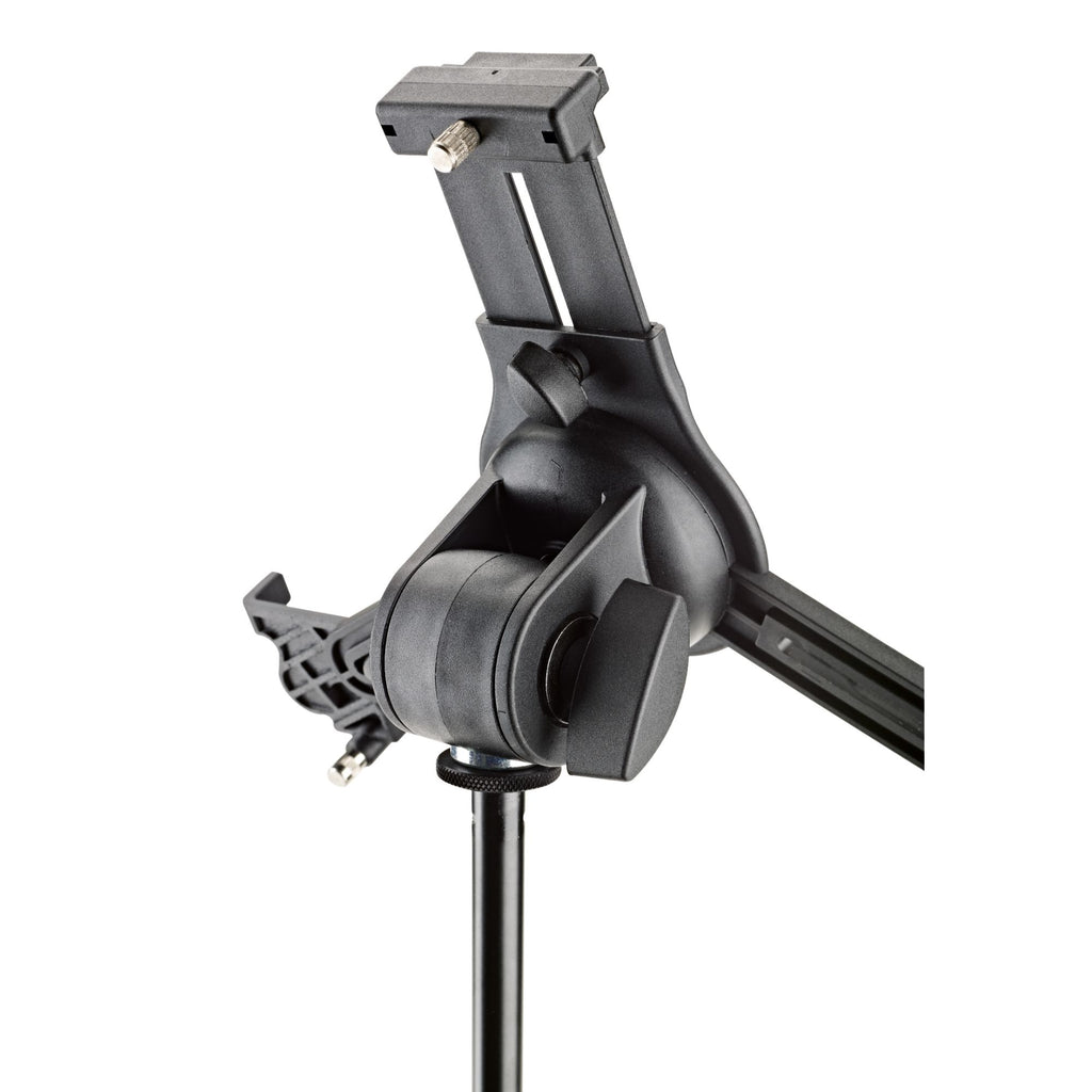 Give your Tablet devices a safe and secure hold: The Universal Tablet Holder can be adjusted variably to accommodate different tablet sizes without needing tools and holds the devices securely and effectively for many different situations. Be it on stage, in rehearsal rooms or at home - thanks to the 3/8" female thread the holder can be attached to for example any microphone stand quickly and simply.