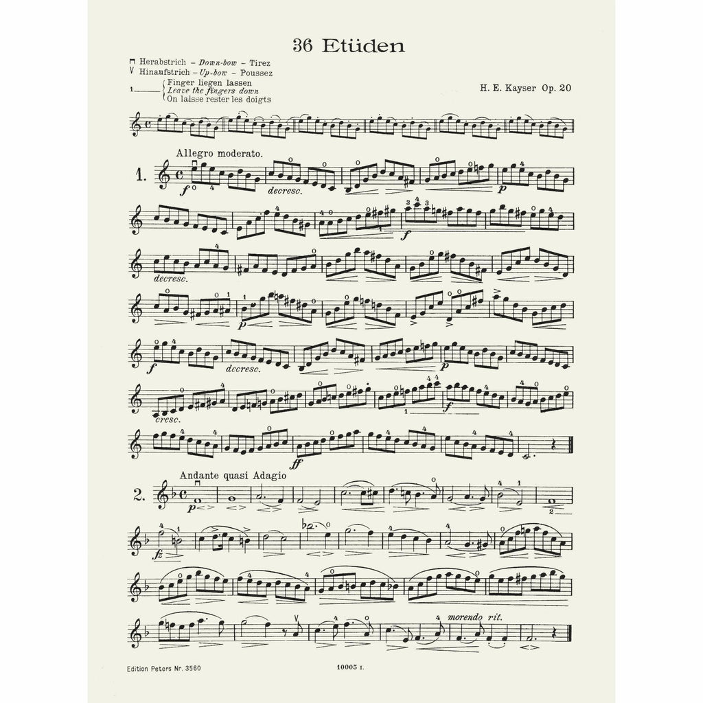 36 Elementary and Progressive Studies for violin by Heinrich Ernst Kayser.