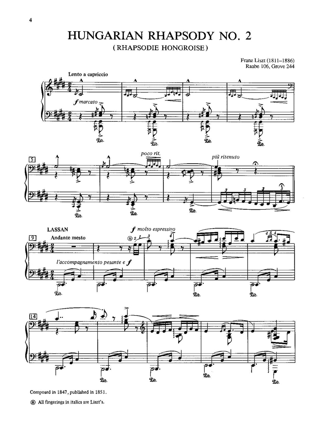 Maurice Hinson's Masterwork Edition of Liszt's perhaps best-known Hungarian Rhapsody contains historic information and performance notes, as well as alternate cadenzas and ossia notations