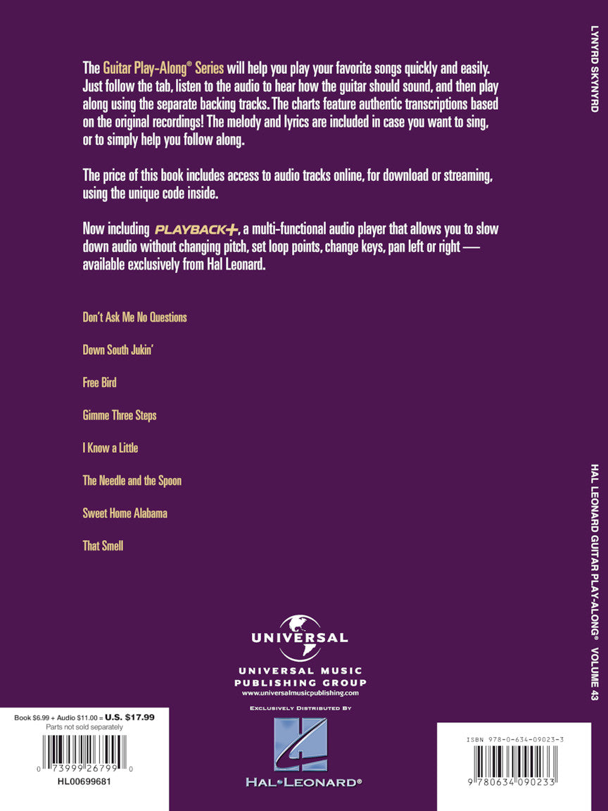 This volume includes eight songs: Don't Ask Me No Questions • Down South Jukin' • Free Bird • Gimme Three Steps • I Know a Little • The Needle and the Spoon • Sweet Home Alabama • That Smell.