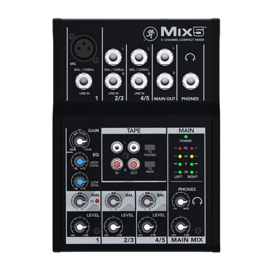 For more than 30 years, musicians and engineers have grown up mixing on a Mackie. You can find our mixers everywhere from major venues to small (but mighty) home studios. Now you can join that legacy with the Mackie Mix5 compact mixer. Featuring high-headroom preamps, a precision 2-band EQ and more, this 5-channel mixer has everything that musicians, content creators, gamers and podcasters need to get professional sound without the big price tag.