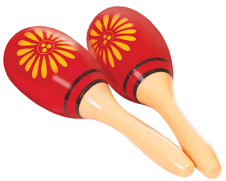 Plastic oval shape maracas. Hand painted. Green or red. 9" long. Pair