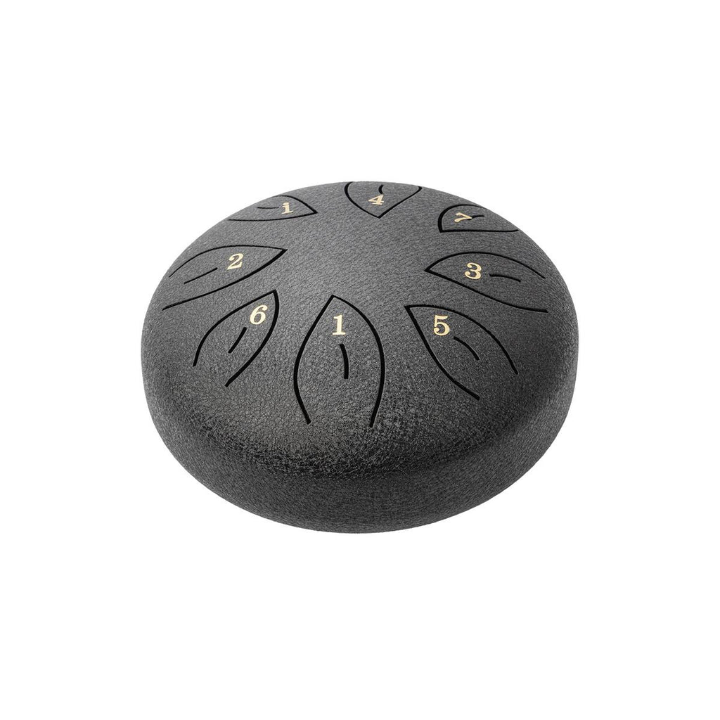 Mano Percussion Tongue Drums are hand-crafted from high grade steel-titanium alloy, coated with a durable paint that protects against tarnishing, scuffs and scratches. These drums produce a clean, bell like, ethereal tone and are supplied with mallets, mallet holder, six rubber finger pads, instructional song booklet and carry bag. C Diatonic.
