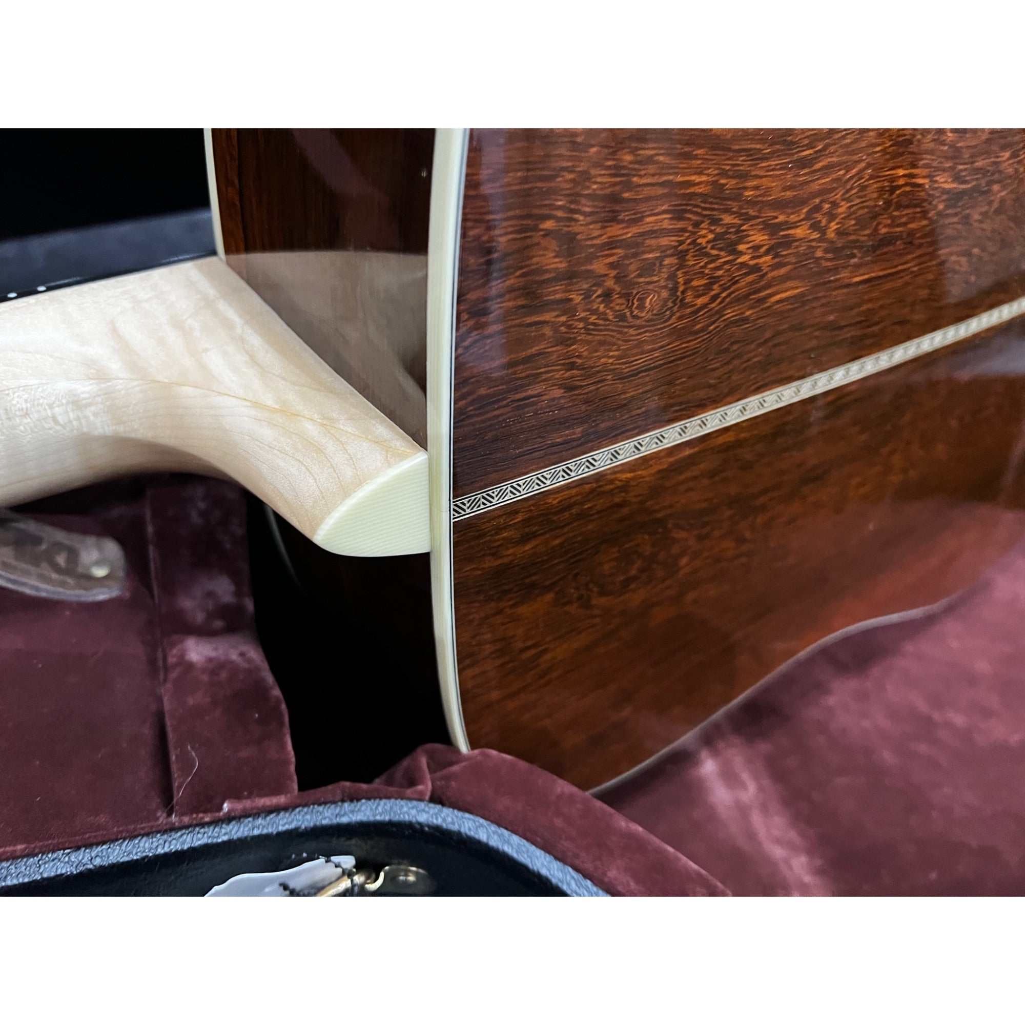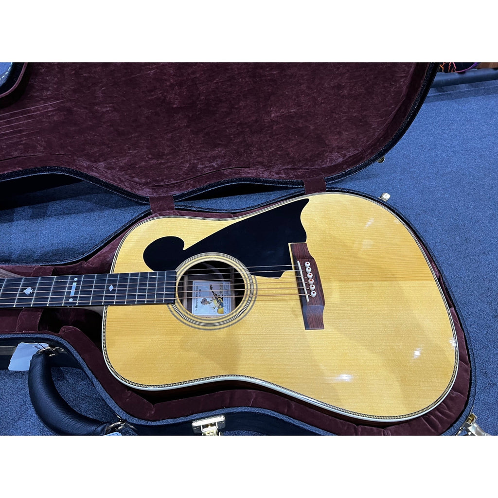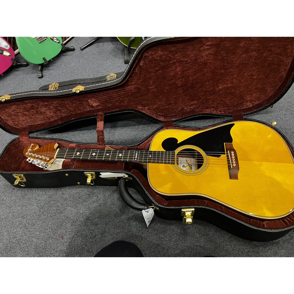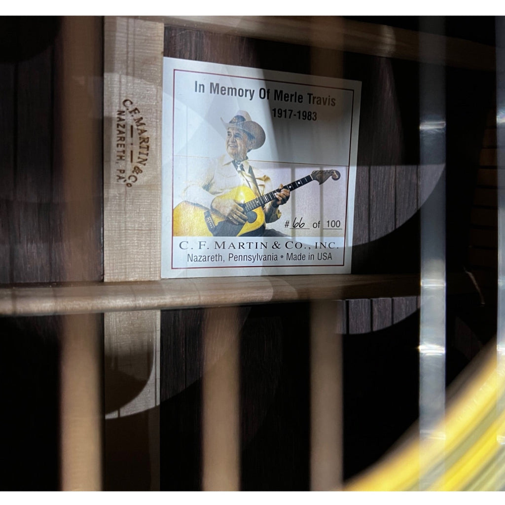 Martin’s D-28M Merle Travis Limited Edition dreadnought acoustic guitar pays tribute to a legendary country and western singer and songwriter. Based on Travis’ modified 1941 D-28, the unique D-28M Merle Travis Limited Edition features a distinctive “six-on-a-side” headstock, solid spruce top, solid rosewood back and sides, and a curly maple neck. The D-28M Merle Travis Limited Edition was limited to a run of 100 instruments. This is #66 of 100.