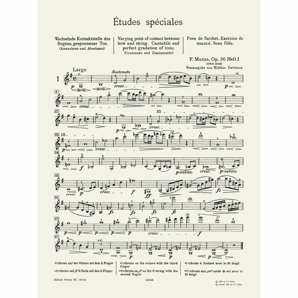 Of the numerous works written for violin, the 75 Etudes of Mazas occupy a position of eminent importance. The 57 exercises, constitute together with the classical studies of Kreutzer and Rode ideal material for purposes of violin study.