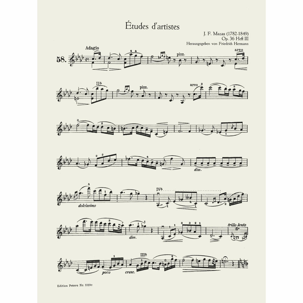 Of the numerous works written for violin, the 75 Etudes of Mazas occupy a position of eminent importance. The 57 exercises, constitute together with the classical studies of Kreutzer and Rode ideal material for purposes of violin study.
