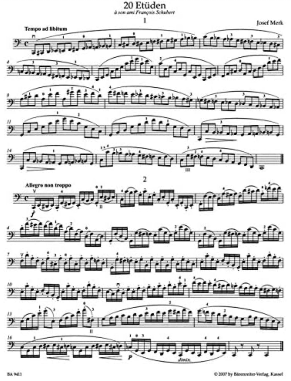 On the heels of his successful cello etude publications of Popper, Duport , Grützmacher and Lee, Martin Rummel has focused his pedagogical skills on the important op. 11 etudes by Josef Merk (1795–1852). Merk was one of the most influential cellists of the first half of the 19th century enjoying the admiration of Beethoven, Schubert and Chopin. The op. 11 etudes dedicated to Schubert have remained a classic of violoncello instruction through to today.