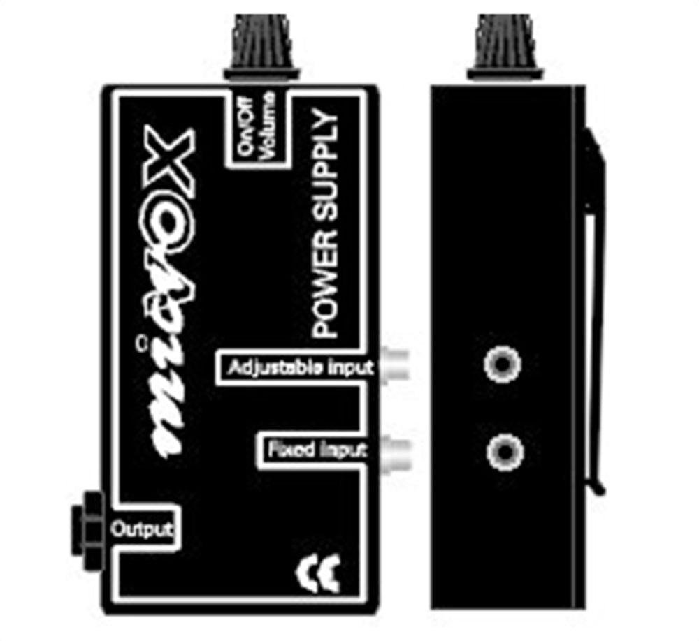 A larger, belt mounting, power supply with on/off, volume control, internal balance and LED battery indicator in a die cast aluminium case.