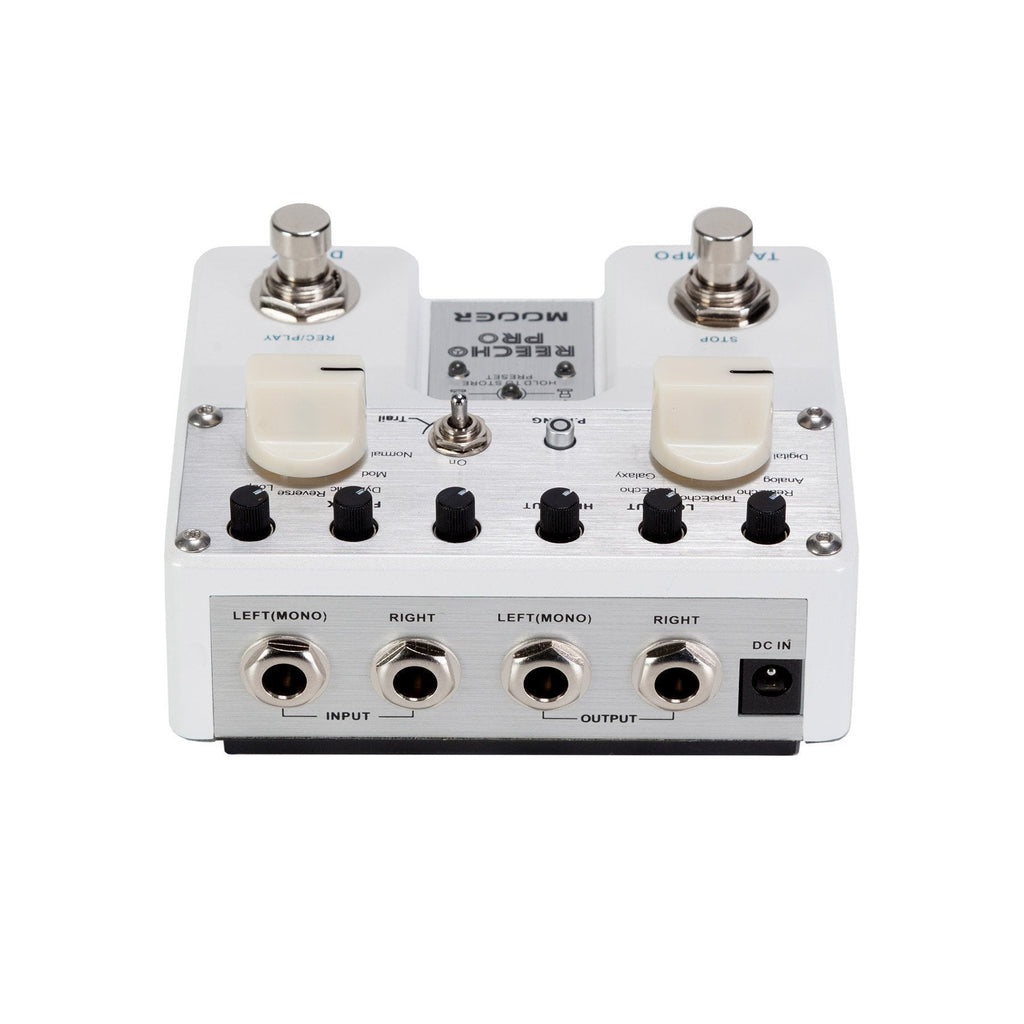 From clean digital delay to psychedelic Galaxy Delay, the Reecho Pro provides different musical styles with different delay choices. Moreover, the pedal includes three additional effects which can be added to the delay effects. Reecho Pro has separated dry and wet level control. It also equipped with high cut and low cut control, PINGPONG function, Loop function, stereo input and stereo output and a preset saving function.