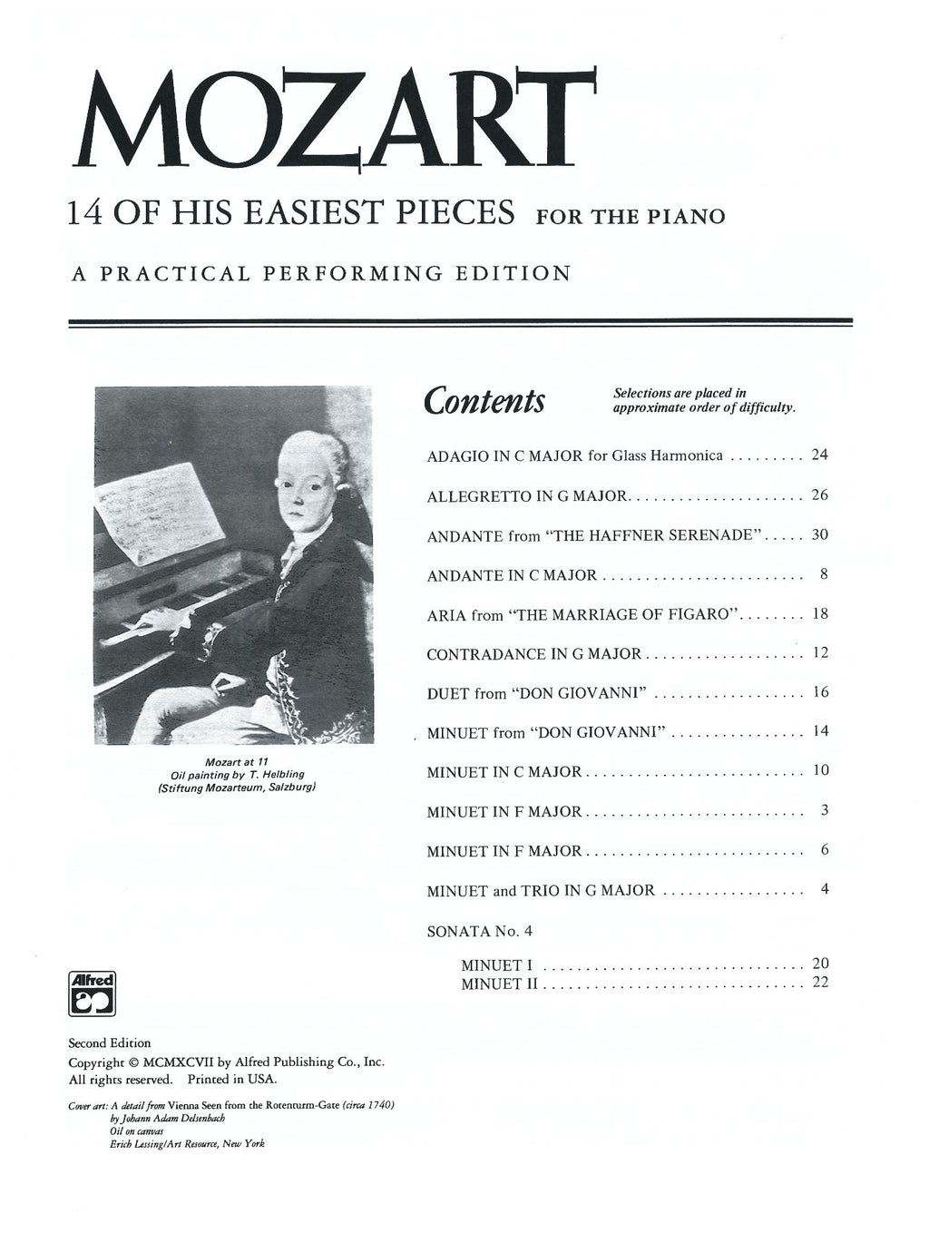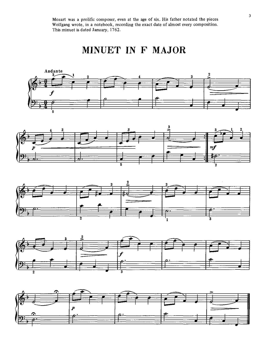 This collection provides an excellent introduction to Mozart's easiest works. Selections include short dances such as the popular "Minuet in F Major," easier sonata movements and arrangements of familiar opera arias. The short biography and notes on each piece will be appreciated by students new to the study of Mozart's music.