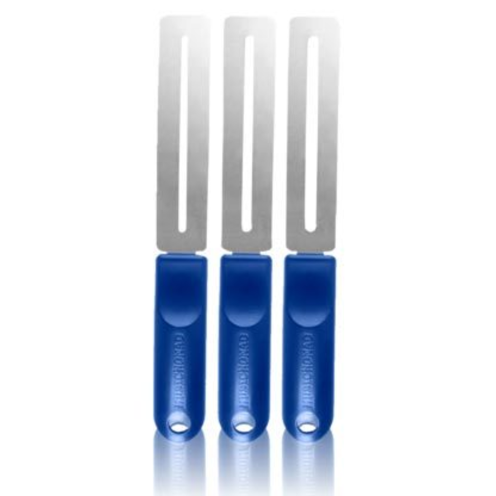 The premium fretboard guards are made using a high precision process that produces a very smooth finish on our high quality stainless steel material, which is nonmagnetic, corrosion resistant and heat resistant. The special engineered curved angle contours to all fretboards. The innovative ergonomic handle makes any fret job easier, quicker, and keeps your fingers from getting in the way.