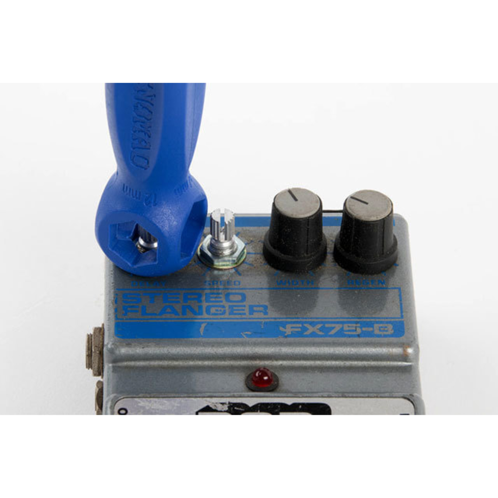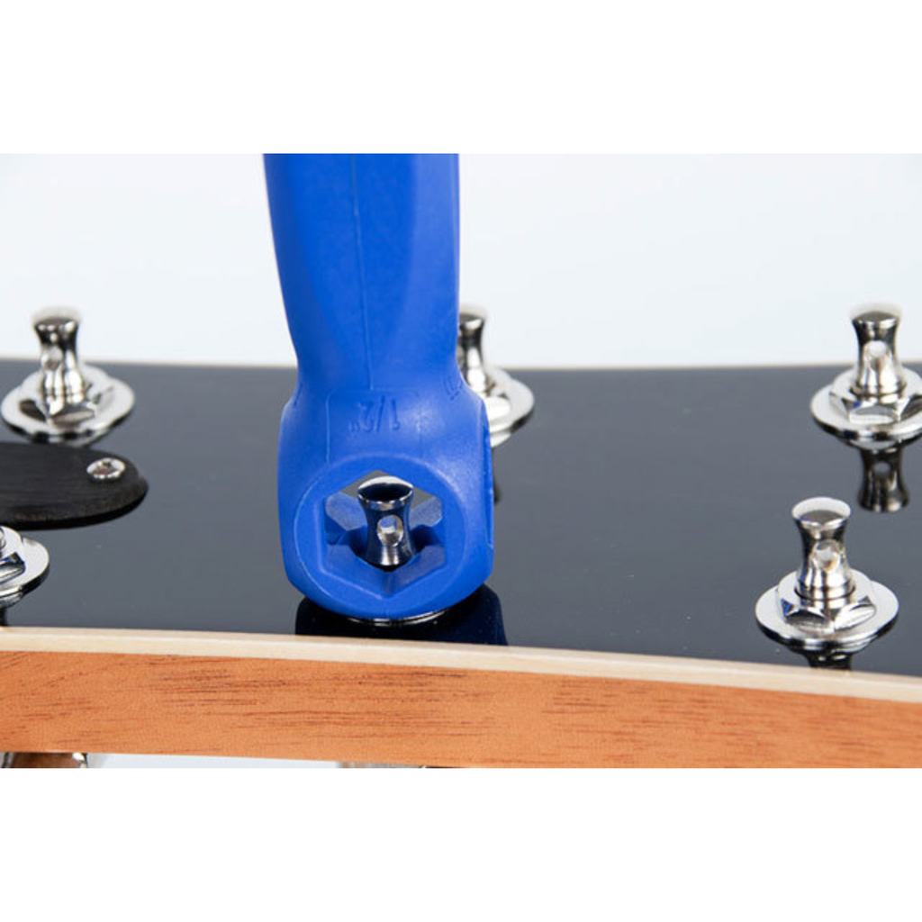 Take out the universal adapter to utilize our 1/2" narrow profile Hex Wrench for tightening tough to reach sunken pots & tele cups. This little tool delivers big results and is a must have for every instrument case.