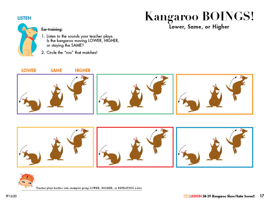 Developing the ear and training the eye of the young child is a key component of the Writing Book A. Tucker, the mascot dog who loves to LISTEN, is always on the scene as the young child imitates, matches, and creates rhythmic and melodic patterns. The multi-cultural friends present improvisation and simple, guided composition activities. Blinker, the owl who loves to LOOK, helps students recognize patterns of rhythms and notes, and introduces sightreading. The Writing Book offers a holistic, musical approach to theory through discovery, creativity, imagination, and fun!