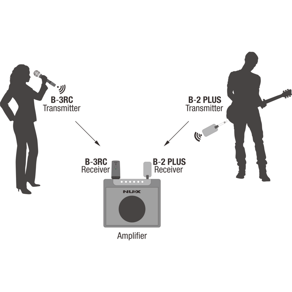 The NUX B-3RC, 2.4GHz microphone system, frees you from the annoying cables, and enjoy the wireless world with non-complicated functions and setups. The more compact size brings better using experience. An extra dynamic microphone and charging storage box are packed into the bundle set.