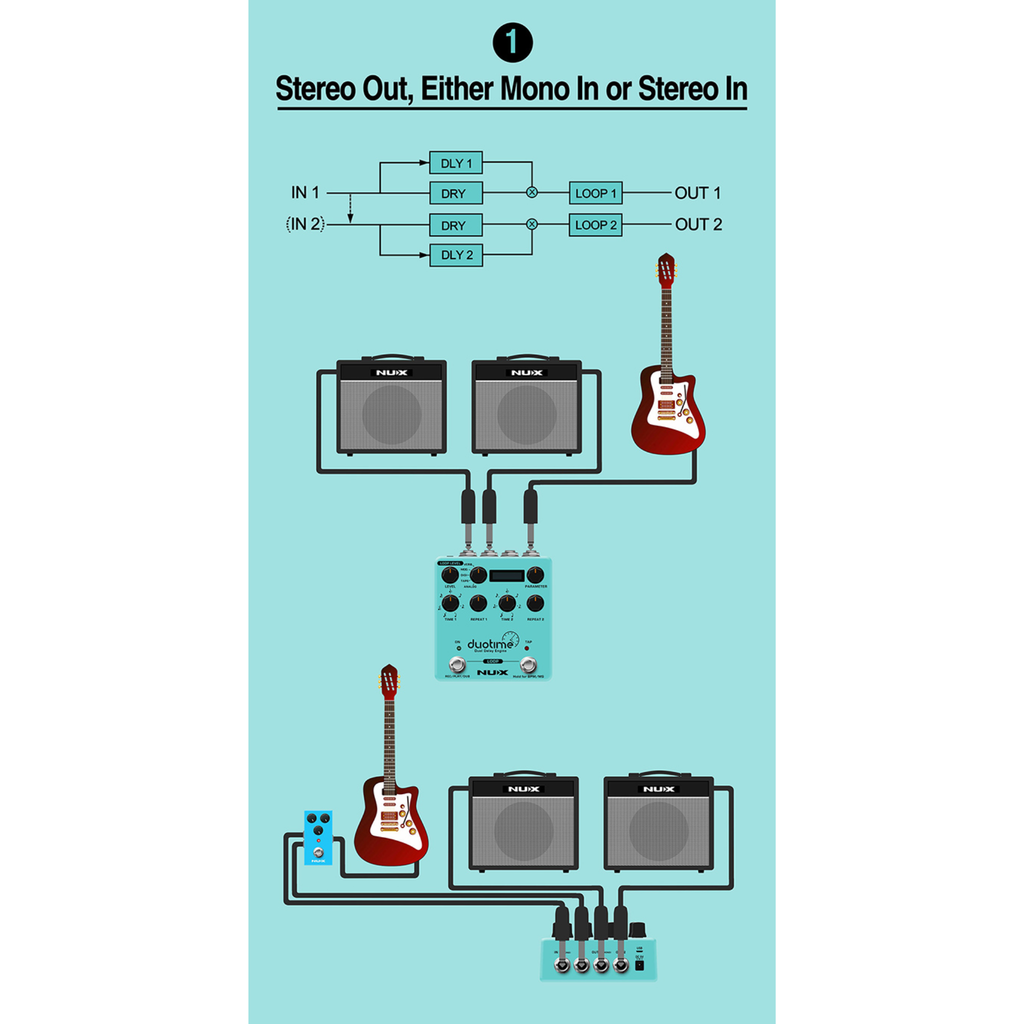 Duotime is a real stereo delay pedal with independent time / sub-division & repeat knobs. In the 80's, all of the professional musicians used rack-mount effects to run stereo delay. It was the golden era of legendary engineering like Lexicon Delta, TC 2290, Eventide H3000, and more.